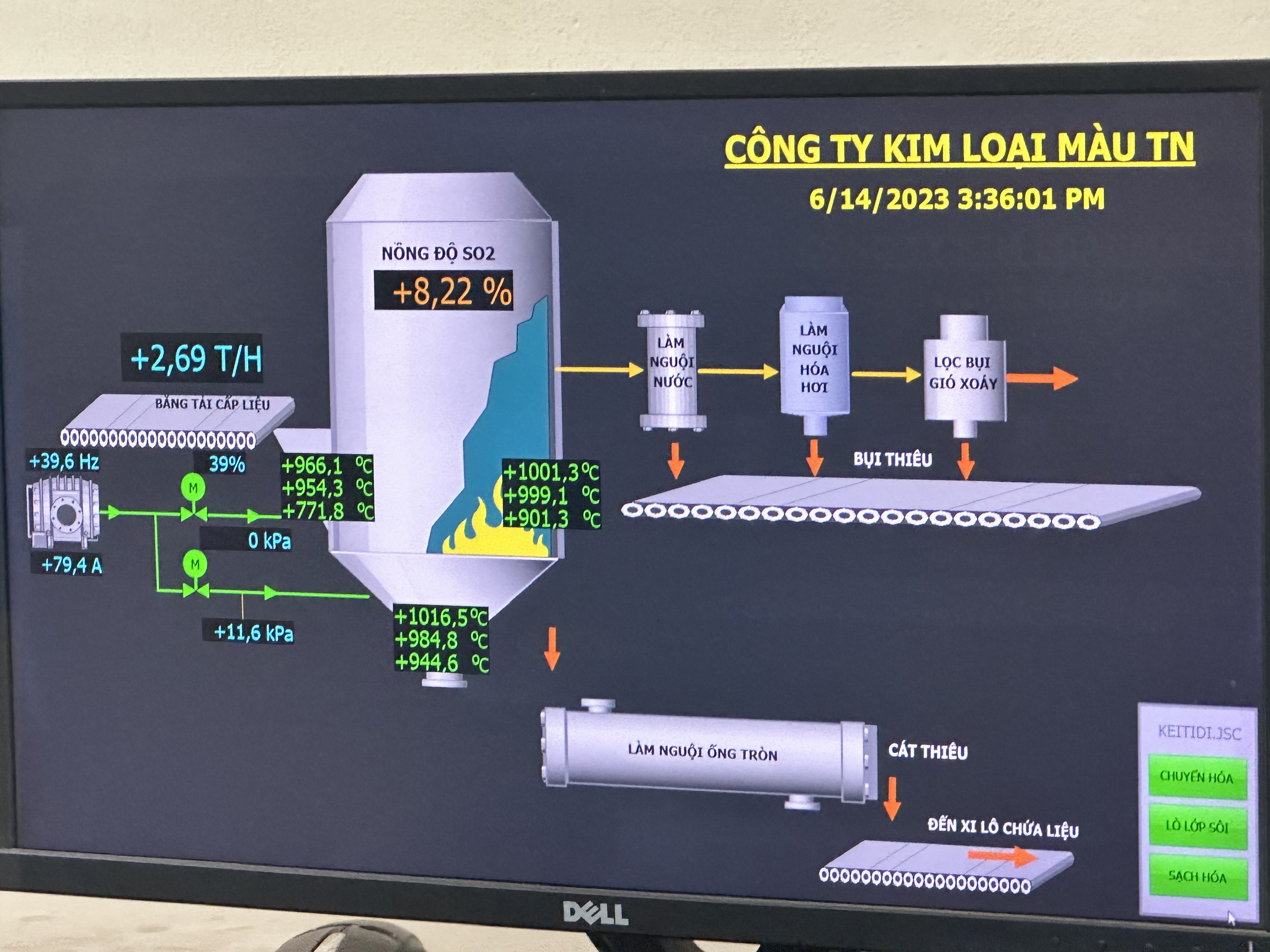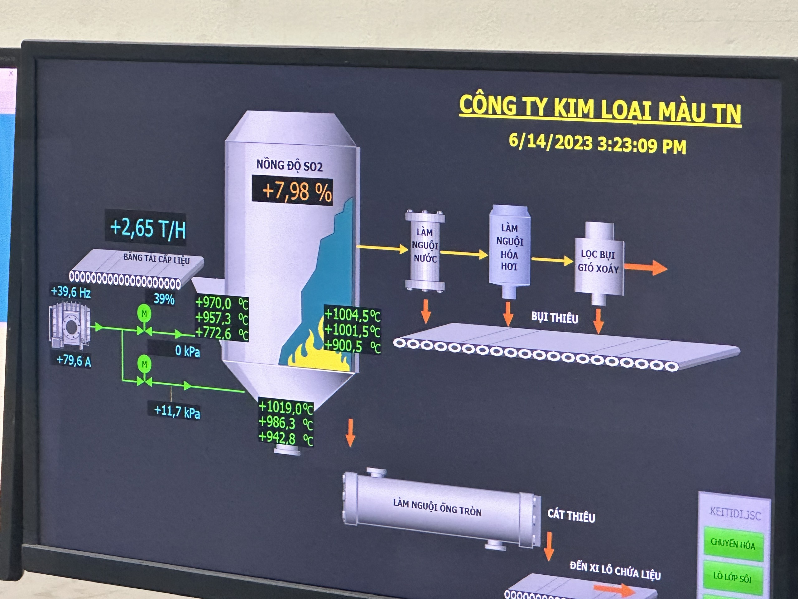 The Thai Nguyen electrolytic zinc plant has a capacity of 10,000 tons of zinc ingots per year, which has now been adjusted to 15,000 tons of zinc ingots per year. During my visit, I observed the zinc production process, temperatures, and various machinery and equipment within the plant.